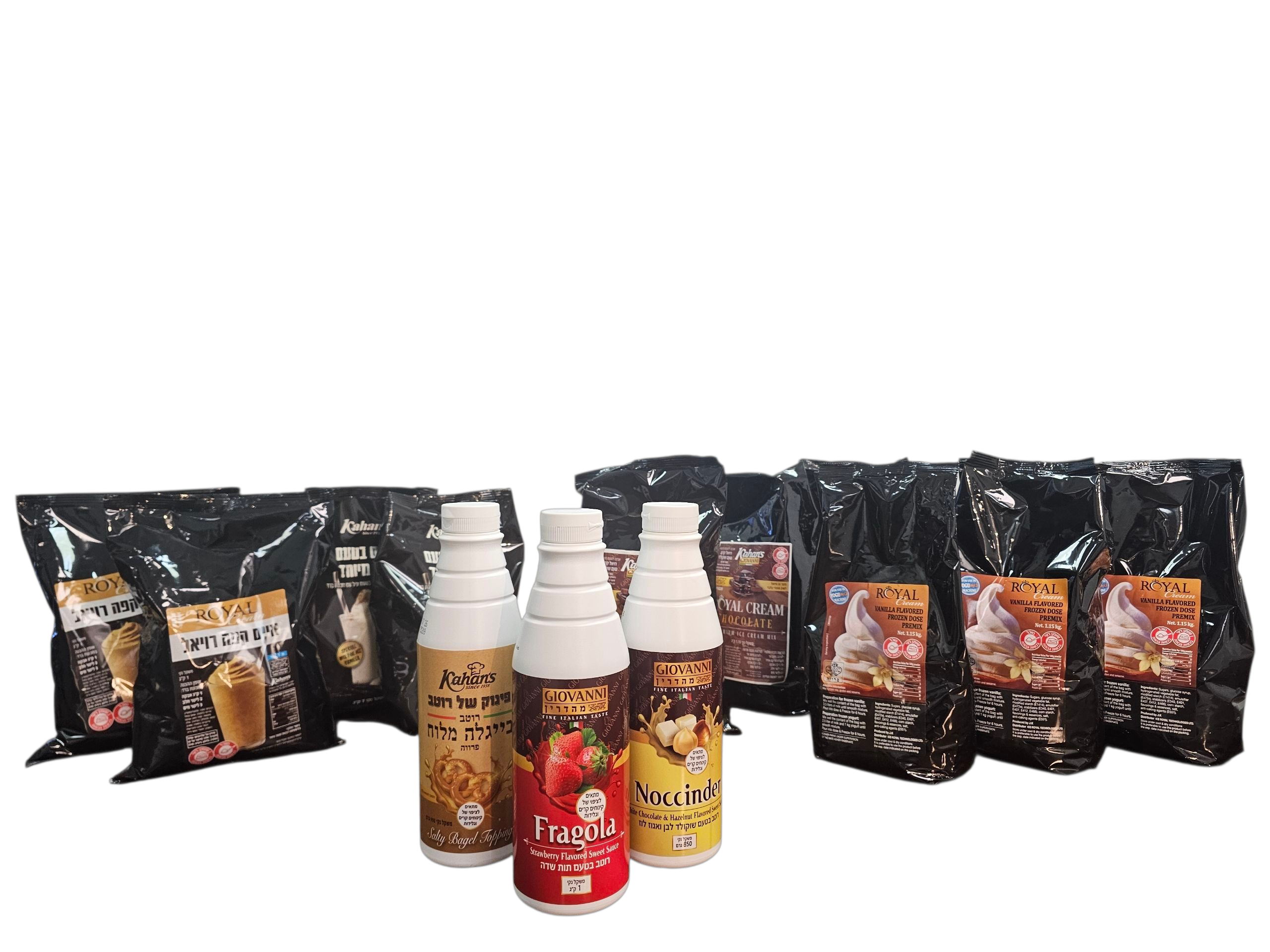 חבילת מוצרים למכונה ביתית לגלידה אמריקאית ואייס/ברד , הכוללת מבחר מטורף של מוצרים :